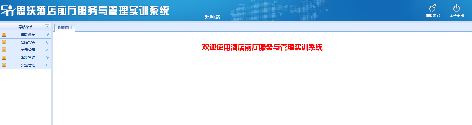 思沃酒(jiu)店前廳服務與管(guan)理模擬(ni)實訓(xun)(xun)平臺(tai)系統以(yi)學生酒(jiu)店前廳工作(zuo)崗位(wei)任務為基礎,以(yi)案例動(dong)畫結合的(de)(de)模式(shi)開(kai)展情(qing)景模擬(ni)實訓(xun)(xun),學生可在該教學軟(ruan)件設置的(de)(de)虛擬(ni)酒(jiu)店環(huan)境中,完成預定、入住辦理、續住、退房、換房、會員管(guan)理、故障報修、投訴處理、黑(hei)名單(dan)等(deng)相關案例任務的(de)(de)操(cao)作(zuo)。該教學平臺(tai)軟(ruan)件可以(yi)逼真的(de)(de)體驗實際(ji)酒(jiu)店前廳工作(zuo)的(de)(de)過程。本公司(si)為了更(geng)好滿足高校的(de)(de)教學需求,也會根據高校的(de)(de)需求提供酒(jiu)店管(guan)理實訓(xun)(xun)室解(jie)決方案,