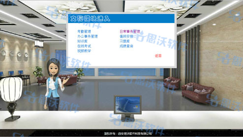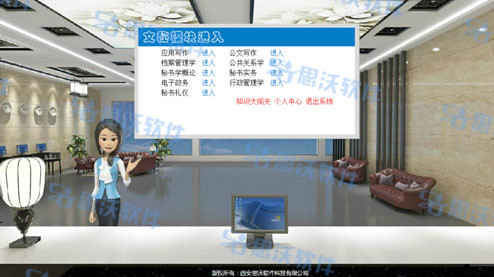 思沃(wo)文秘虛擬仿真實(shi)訓(xun)系統是我公司(si)依(yi)據文秘專業(ye)(ye)相(xiang)關(guan)課程(cheng),結合(he)3D動態場景技(ji)術,引入實(shi)際(ji)文秘工(gong)作中的相(xiang)關(guan)案例,融合(he)開發(fa)的一款針對文秘專業(ye)(ye)實(shi)訓(xun)的應用型教學平臺軟(ruan)件。