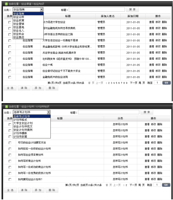 2、包(bao)含創(chuang)業(ye)(ye)理論(lun)知識(shi)的學習和創(chuang)業(ye)(ye)實戰(zhan)訓(xun)練。創(chuang)業(ye)(ye)理論(lun)知識(shi)包(bao)括測評系統(tong)、創(chuang)業(ye)(ye)課(ke)堂(tang)、創(chuang)業(ye)(ye)講談、創(chuang)業(ye)(ye)命題、創(chuang)業(ye)(ye)計劃(hua)(hua)書、法規知識(shi)、網上創(chuang)業(ye)(ye)、創(chuang)業(ye)(ye)準備、創(chuang)業(ye)(ye)論(lun)壇。創(chuang)業(ye)(ye)實戰(zhan)訓(xun)練包(bao)含選擇(ze)行業(ye)(ye)、注冊公司、人員招聘、產(chan)品戰(zhan)略策劃(hua)(hua)、產(chan)品生產(chan)、渠道銷售、促銷、備貨運送等(deng)內容。