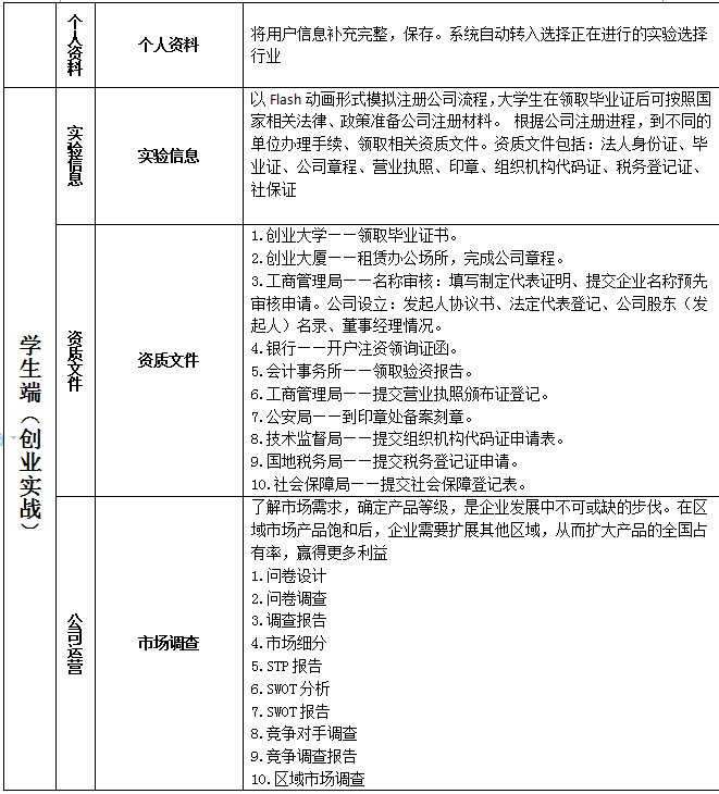 學(xue)生端(duan)模擬(ni)現實創(chuang)業(ye)的步驟及相關流程進行(xing)創(chuang)業(ye)實驗。